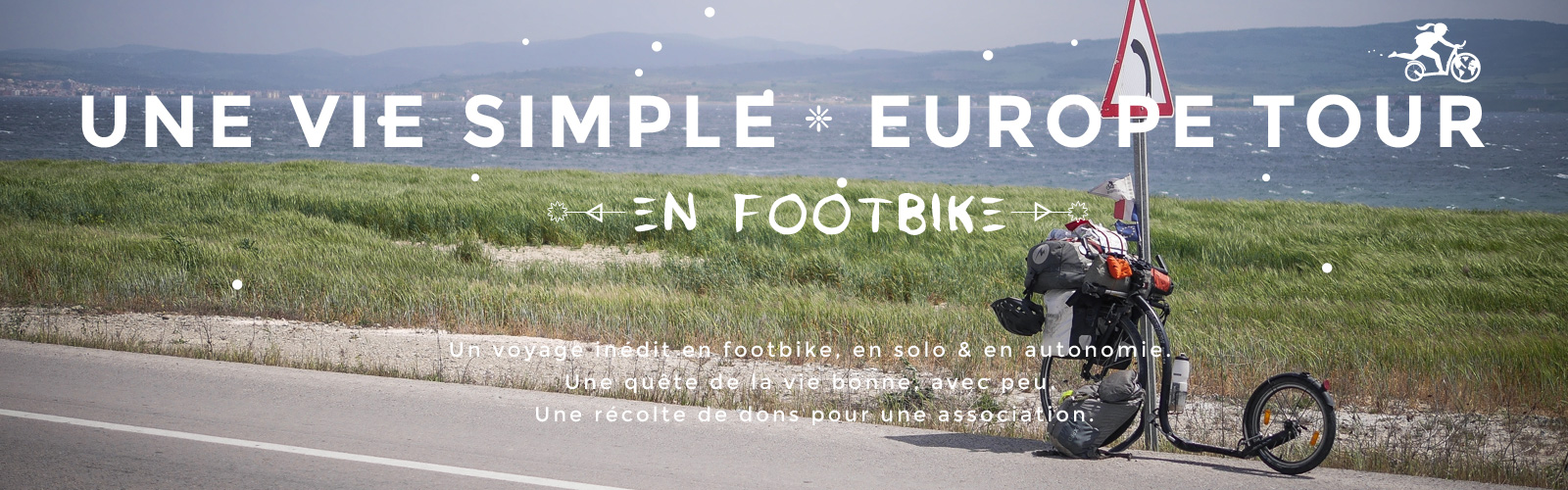 Le premier tour d’Europe en footbike ! Plus de 20 000km, des millions de kicks, en solo et en autonomie, pour un tour solidaire et humaniste, en quête de la vie bonne et en récoltant des dons pour une association. Départ : mi-novembre 2015.