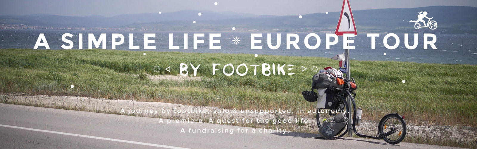 The first tour of Europe with a footbike! More than 20 000km, millions of kicks for a humanist and solidarity-based journey, in a quest for the good life. And a fundraising for a charity. Began mid-november 2015.